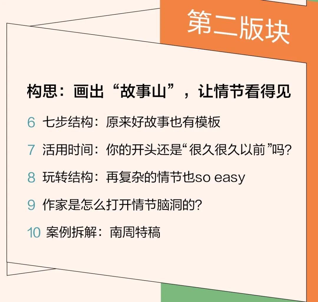 第二版块,我们将从结构开始入手,结构是故事的骨骼,让故事肢体健壮,好的结构能保证事件、场景像大楼的建筑部件那样组合严密,环环相扣,让读者读得紧张,读得畅快。