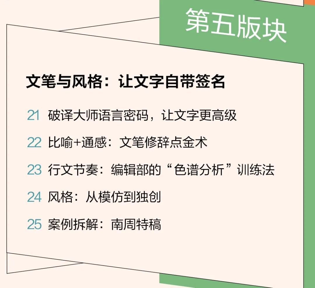 比如,课程五大板块每版块的第五小节,我们都专门设计了一节案例分析,选择的案例为南方周末的经典特稿。