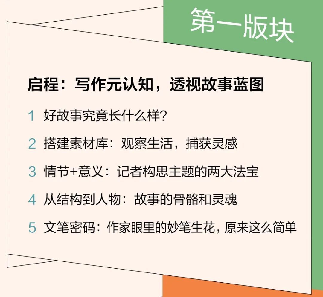 于是,有了我们第一版块的内容:启程:写作元认知,透视故事蓝图